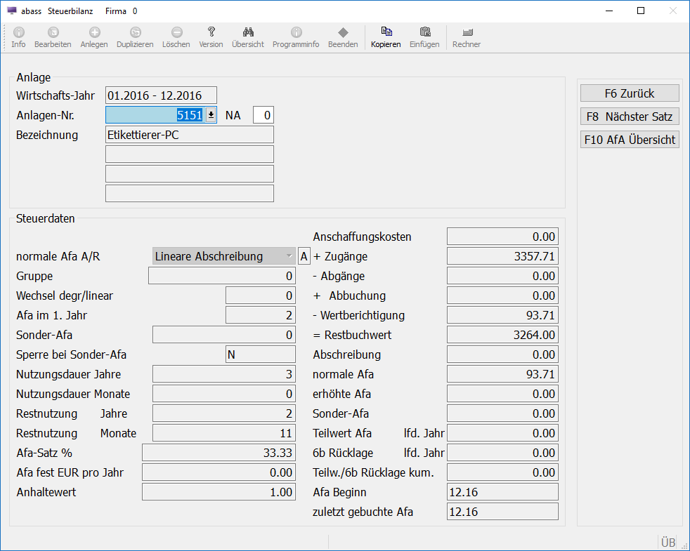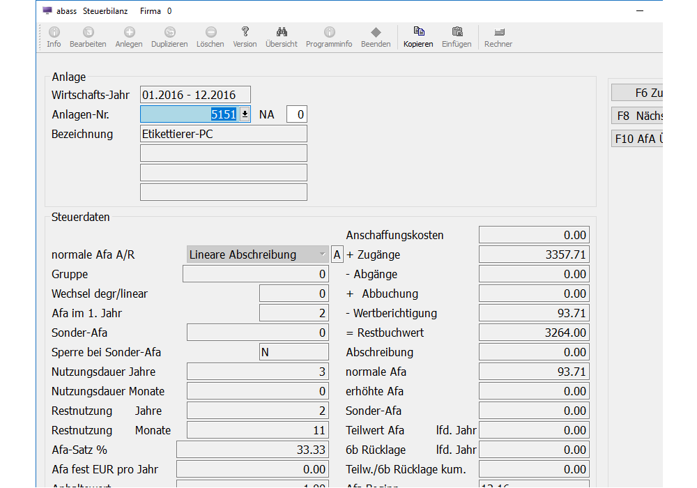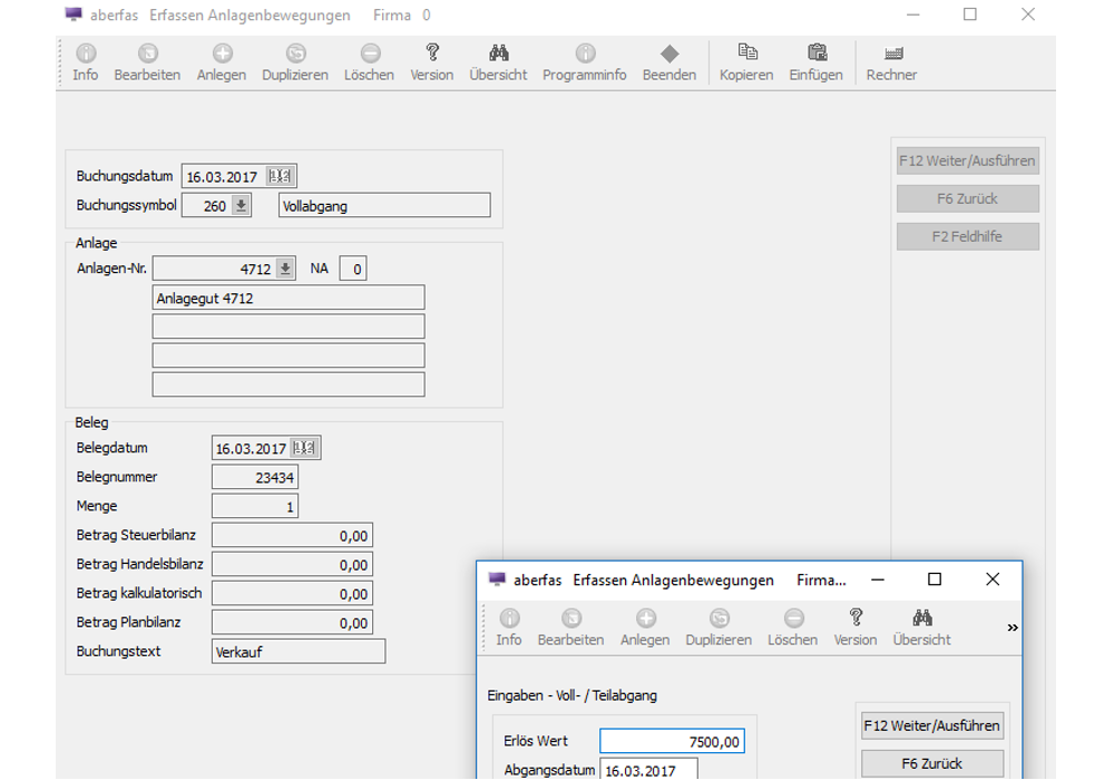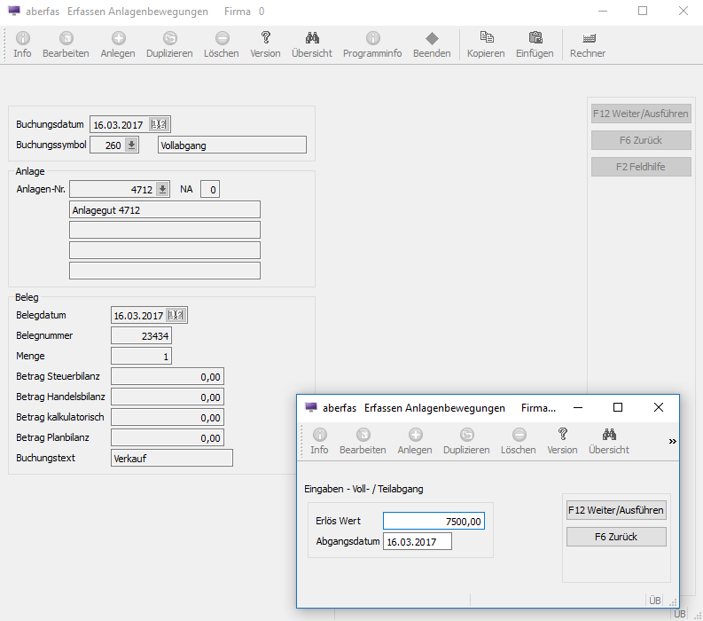 Anlagen-Buchungsprogramm (Erfassung von Anlagenbewegungen)